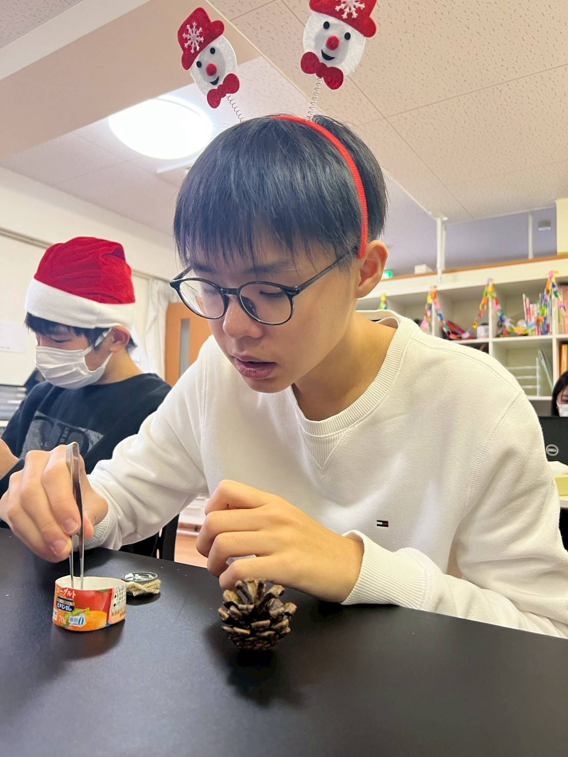 制作では松ぼっくりツリーをを作りました。