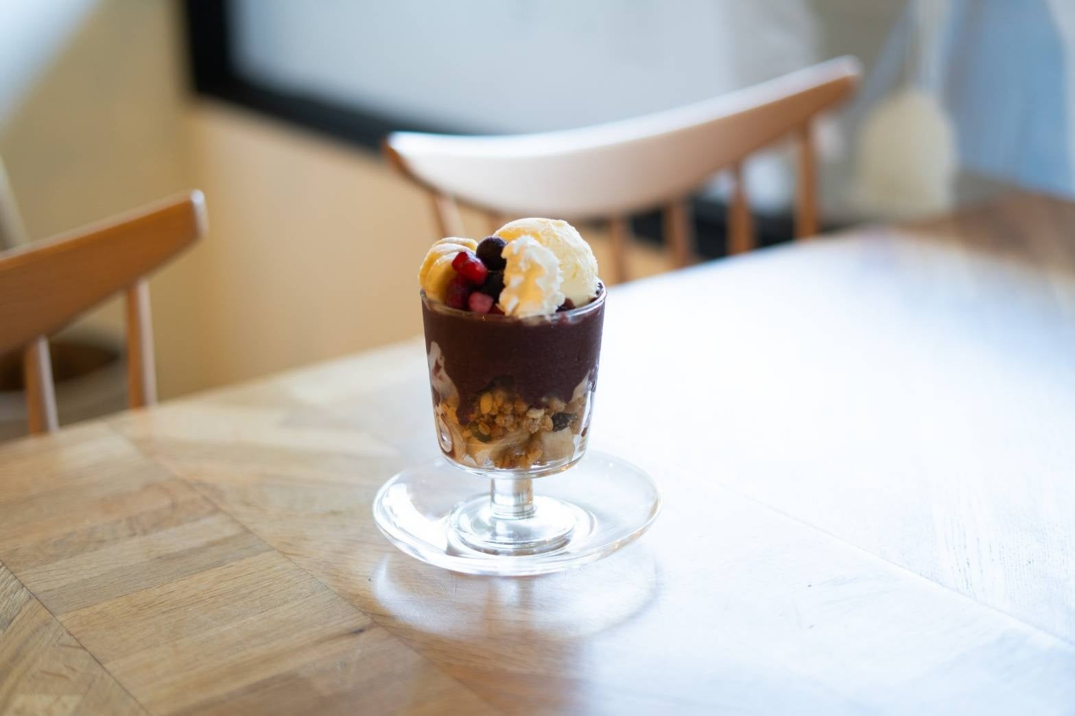 人気のアサイーをパフェにしました。 ベリーやバナナなどのフルーツとお楽しみください。