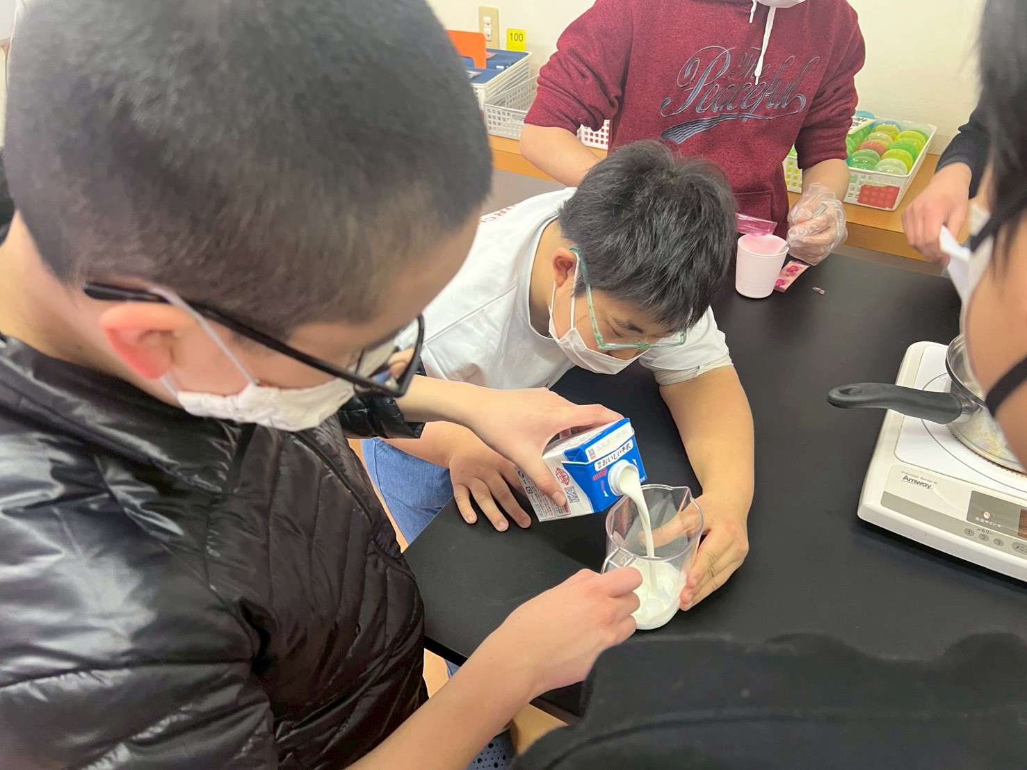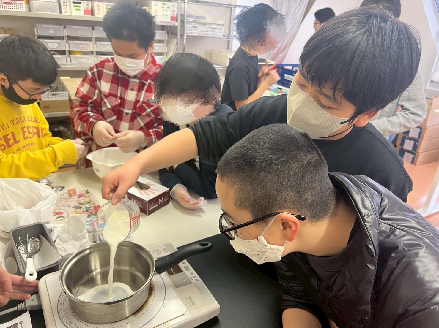 みんなでざいりょうをまぜました。