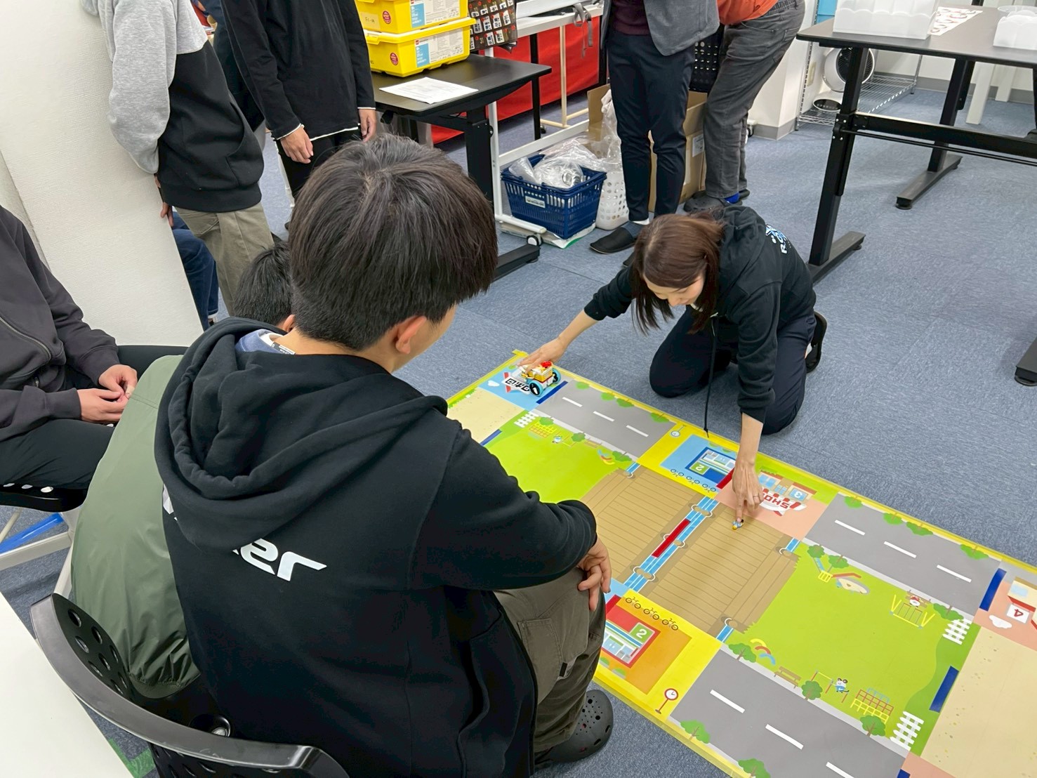 そして作った車でレゴの人間を助けるゲームをします、まずは完成させた車にpcで指示を出し動かして動作を確認します、動作を確認したらゲームスタート。