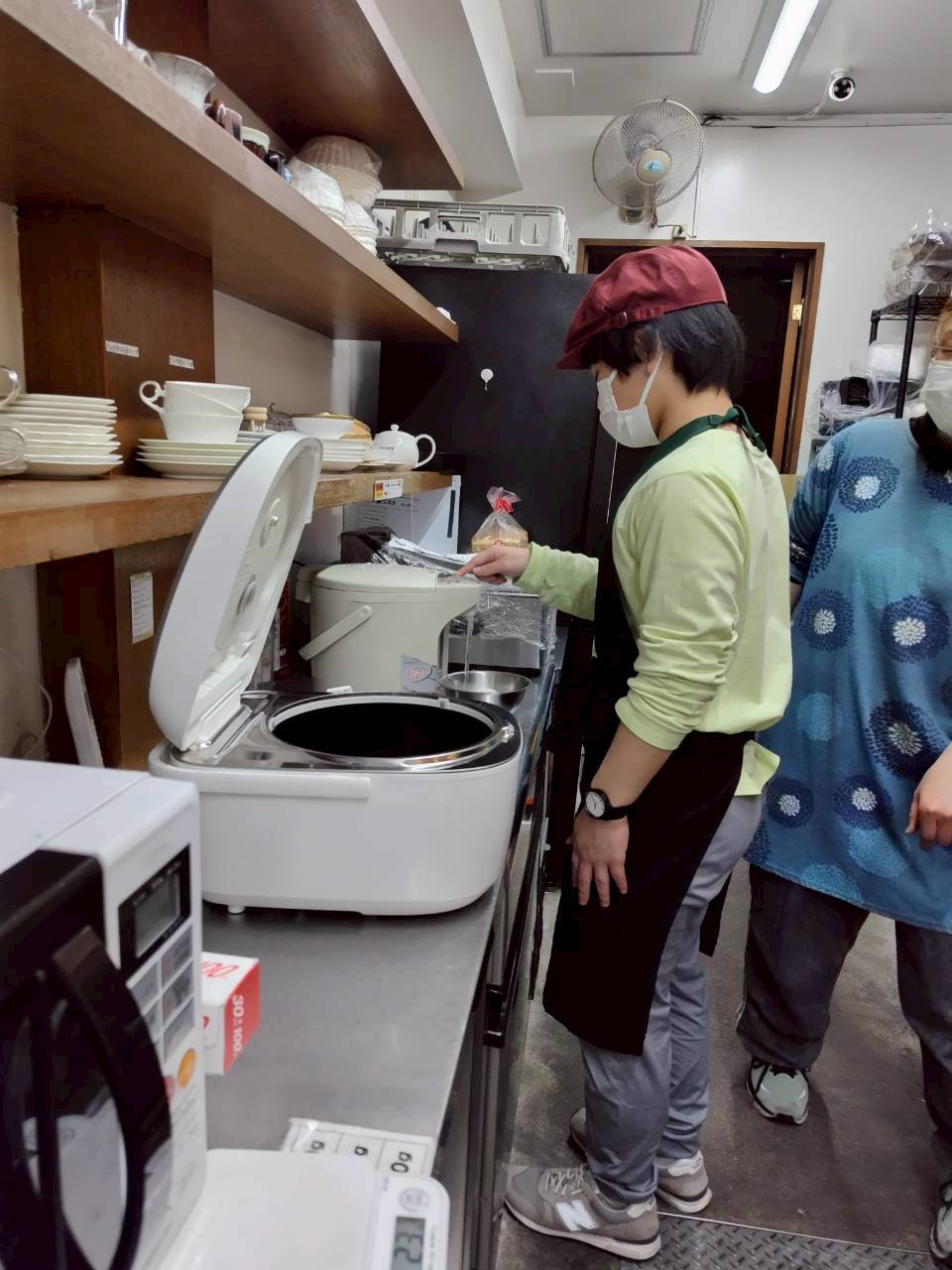 午後には、ミムロウのカフェでごはんの仕分けやキッチンの床掃除をしました。